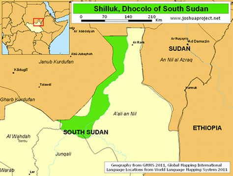 The Shilluk (Chollo) are a major Luo Nilotic ethnic group in South Sudan, residing on both banks of the Nile River in Upper Nile state. Before the Second Sudanese Civil War, the Shilluk also inhabited settlements on the northern bank of the Sobat River, near its confluence with the Nile. They rank as the fourth largest ethnic group in South Sudan, following the Dinka, Nuer and Zande. Their language, called Dhøg Cøllø, belongs to the Luo branch of the Western Nilotic subfamily of the Nilotic languages.