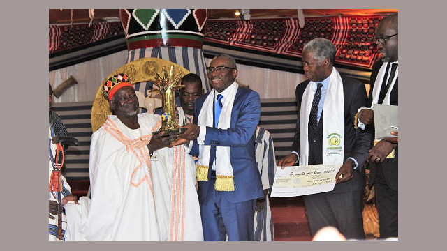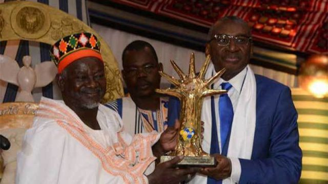 le Moog-naaba Bãoogo du Burkina Faso recevant le prix Macky Sall pour le dialogue en Afrique-Dec 2017