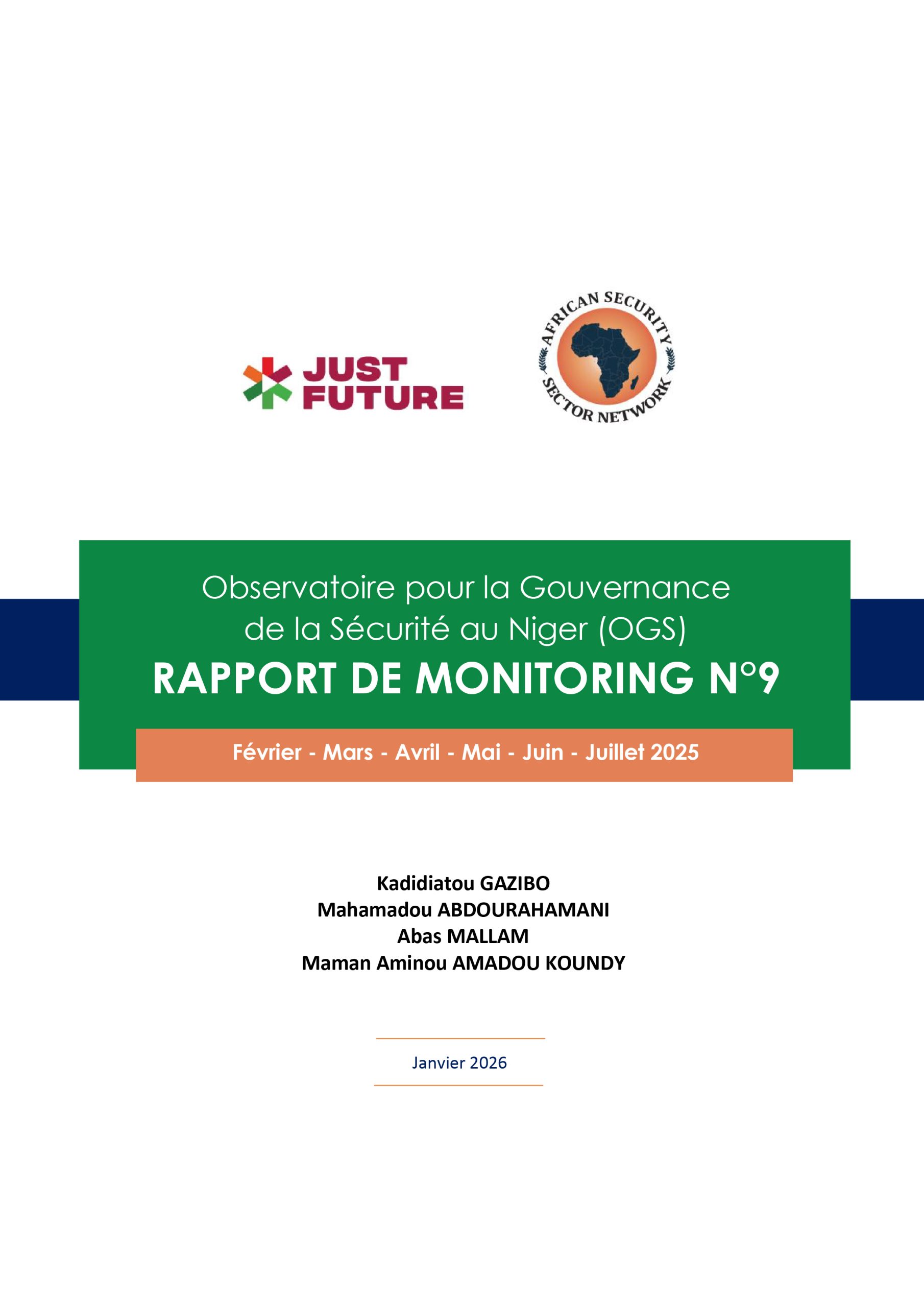 Dans le cadre du Programme Just Future Alliance (JFA), « l’Observatoire pour la Gouvernance de la Sécurité (OGS) », en collaboration avec l’African Security Sector Network (ASSN), a engagé un processus de monitoring citoyen de la situation sécuritaire au Niger dont l’objectif est d’évaluer l’état de la gouvernance de la sécurité dans les régions de Tillabéri, Tahoua et Maradi.